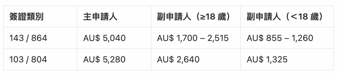 新財年起,包括 143、864、173、884、103 和 804 類別在內的多個父母簽證,其申請費用普遍上調約 3%。主申請人與副申請人的費用如下: