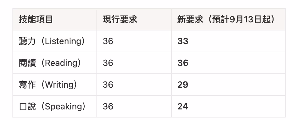 - 更多非母語申請人可望受益:尤其對於聽說寫能力較弱但專業技能強的申請人,新要求更具可行性。